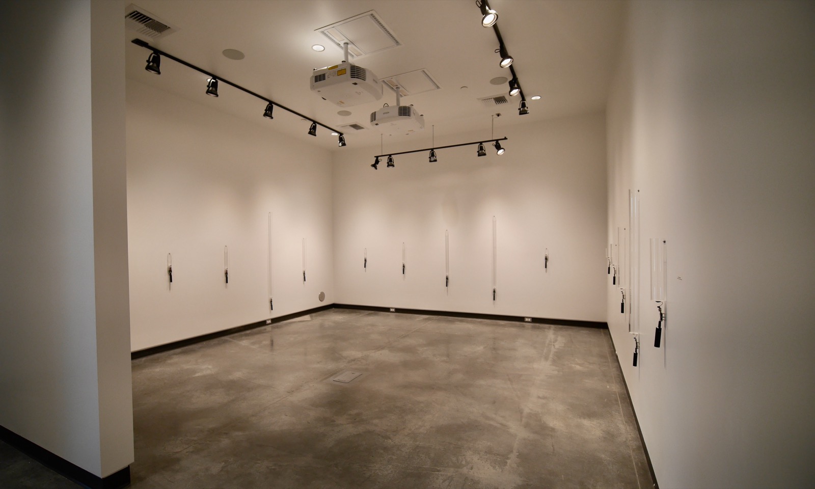 Concomitant Variations is a sound installation in which many glass tubes are used as chambers to impart strong resonances on sounds produced by feedback circuits in each tube. Each circuit delays sounds that derive from a combination of sounds present in the environment. These sounds include the people and ambient sounds of the space, the sounds produced by the other tubes, and the resonated sounds of the tube itself. The resultant sounds are forever evolving in variations derived from interlacing interactions of prior sounds. In this installation the physical materials of the work are highlighted by the specific resonant sounds produced. This is different from the traditional use of a loudspeaker as an inconspicuous sound reproducer. This connection between the visual and audible material allow us to understand that the combined sounds heard from the work are an emergent property of the tubes, that is, each tubes sound is dependent on the contributions of the others.